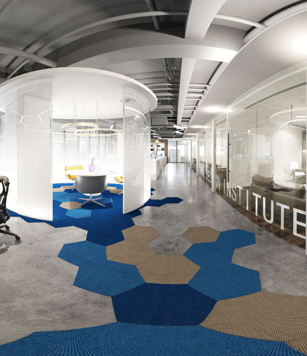 上海辦公室裝修公司案例:不同的材料和照明為每個層次和活動帶來溫暖和個性。循環模式提供了各種移動和居住空間的體驗。